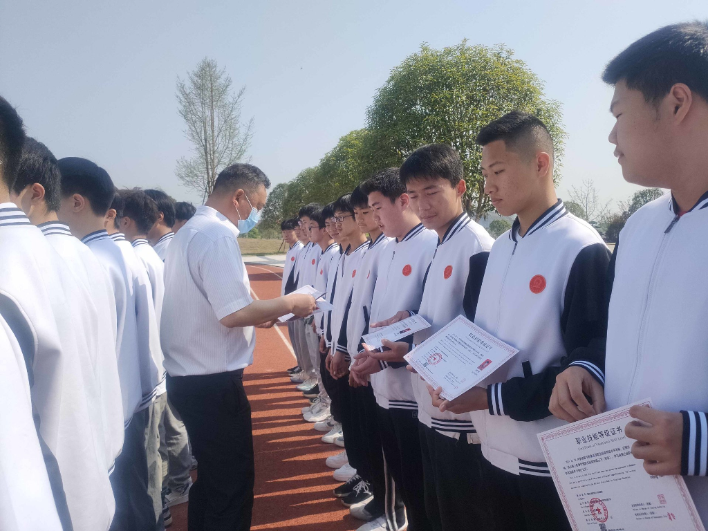 田书记、朱校长、李校长为以上同学颁奖,全体师生以热烈的掌声对获奖同学表示祝贺,希望我校全体同学以此为榜样,坚定信心、明确目标、敢于担当、崇尚技能,通过刻苦学习、勤思巧干,不停地提升自己的道德修养和技能素养,让自己逐步成长为德技并修的职业技能人才,为社会、为祖国的发展贡献出自己应有的力量。