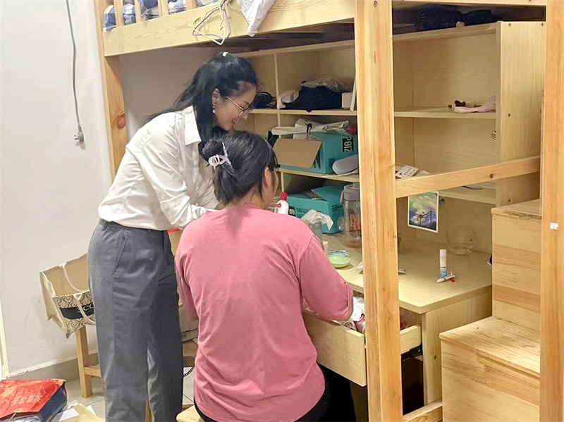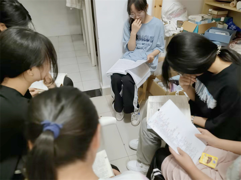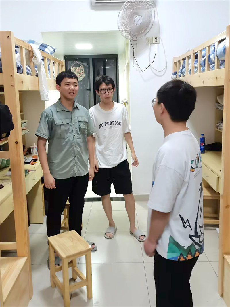 为减轻学生考前心理焦虑情绪,高三教师、班主任深入寝室,与同学们聊天,沟通,在一阵阵爽朗的笑声中,似乎没有那么紧张了。