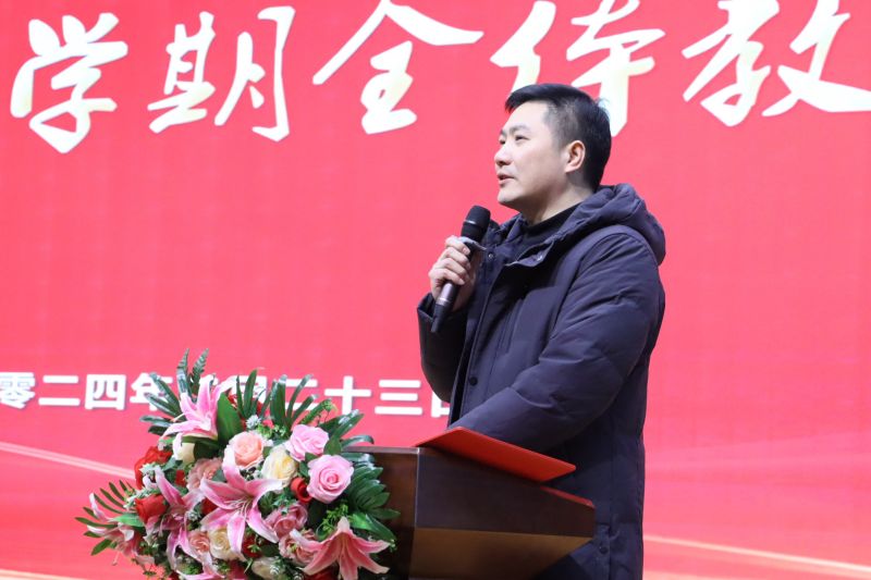 伴随着热烈的掌声,执行校长李朝晖发表了热情洋溢的讲话。首先,他带领全体师生共同回顾学校2023年取得的丰硕成果,学校围绕提高教学质量、提高服务质量、提升课堂教学效率、坚持立德树人、三全育人、丰富课外活动、精细化管理等目标,张弛有度、井然有序地开展了各项工作,圆满完成了本学期任务。李朝晖对每一位认真耕耘的现代人表示感谢,同时勉励每一位现代人,要继续筑梦未来,踔厉奋发,共谱教育未来新篇章。其次,强调了寒假期间筑牢安全防线的重要性,提出了四点要求:保证交通、饮食等方面的安全;远离违法行为,做知规知法公民;为父母分忧,做力所能及的家务,用行动感恩父母;科学安排寒假时间,自我管理约束,让自律常伴我身。