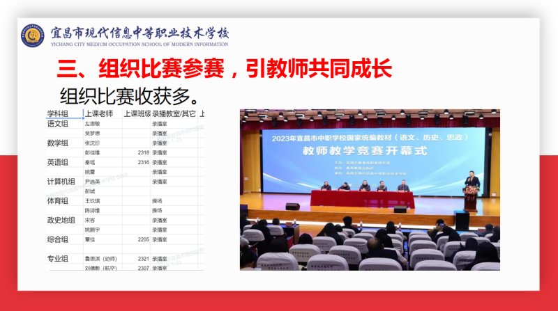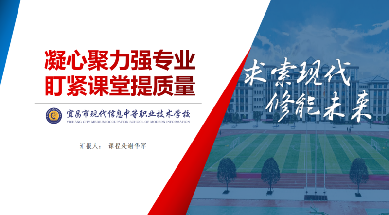 课程发展处主任谢华军围绕学校内涵发展从强化专业建设、规范教学管理、丰富学生第二课堂、推进课堂效率提升、提高技能高考和技能大赛成绩等维度入手,持续发力,把能力体现在“会干事”上,把目标锁定在“干成事”上,亮出了本学期大力推进的有效举措以及取得的不俗成绩。盘点学期工作的同时,谢华军也总结了三项不足之处,新学期将以问题为导向,积极改善,努力作为。