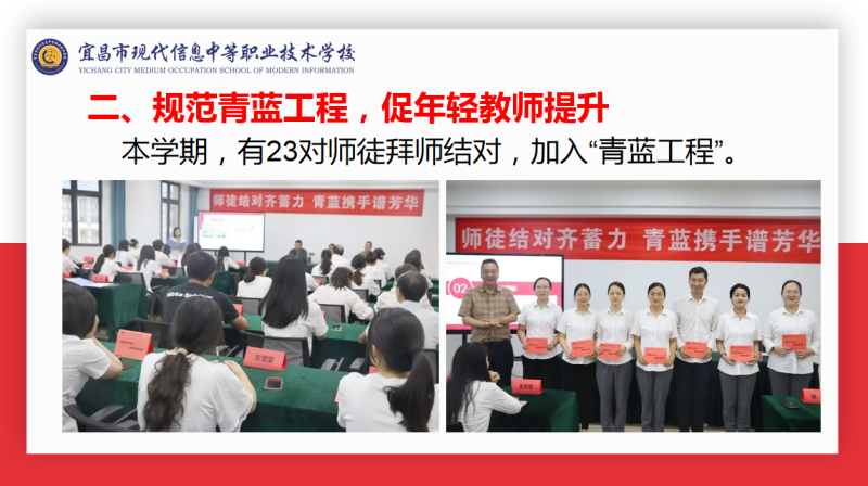 教师发展处主任高瑛进行了“筑学校内核,促教师发展”的主题发言,她阐述了部门依托强化集体教研、规范青蓝工程、推动考证认证等四项重要举措,促进了年轻教师提升,强化了教师发展内涵。教师作为学校发展的不竭动力,教师队伍建设一直在路上,新学期,在遵循教育规律和教师成长发展规律的基础上,将强化保障,继续推进以上工作。