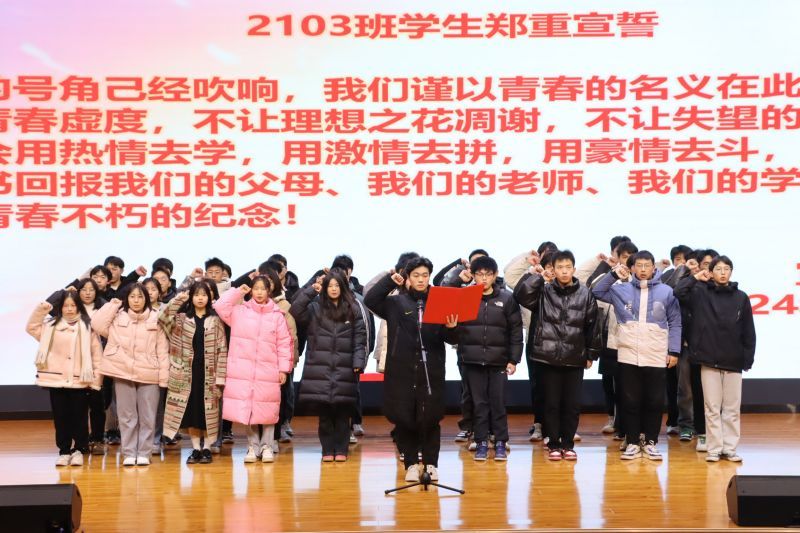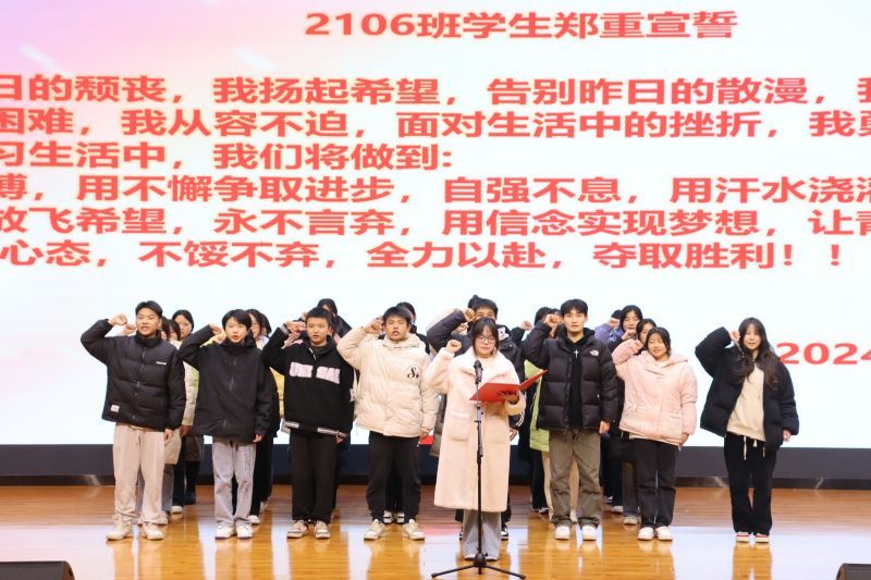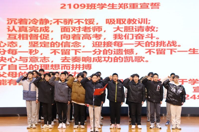 高三全体教师在会上专题学习并签署了《备考管理承诺书》、《教师备考承诺书》,用更细节的要求指导管理干部和三年级教师,借此明确工作目标,清晰工作思路。管理干部代表谢华军、高瑛、武玉林、邹建向集团董事长田水荣递交高考管理承诺书,田书记也对各位干部说出“重任在肩,继续努力”的殷切嘱托;班主任、教师代表向执行校长李朝晖递交教师管理承诺书,李校长分别对各位代表发出“同心戮力,打好攻坚战”的鼓励;各班班主任组织学生学习高三学习要求、生活要求、纪律要求,向副校长肖飞递交班级学生备考承诺书,肖校长勉励各班切实做好学生管理工作,力争完成分班上线目标。