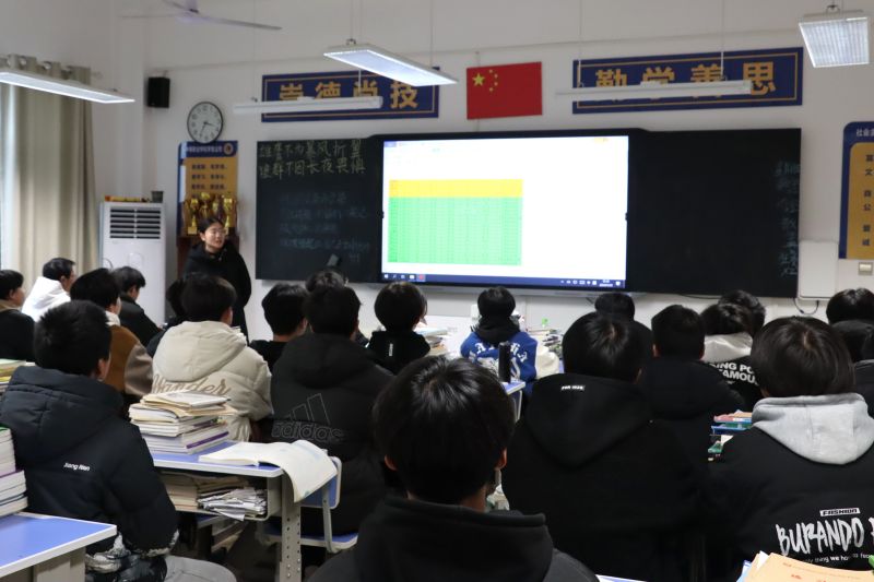 课程处主任谢华军就每次调考成绩向家长作了质量分析,并明确上半年备考的重点工作。肯定了以往我校做出的成绩,并就我校在全市的排名以及学生目前的成绩、状态、进步作出了肯定。