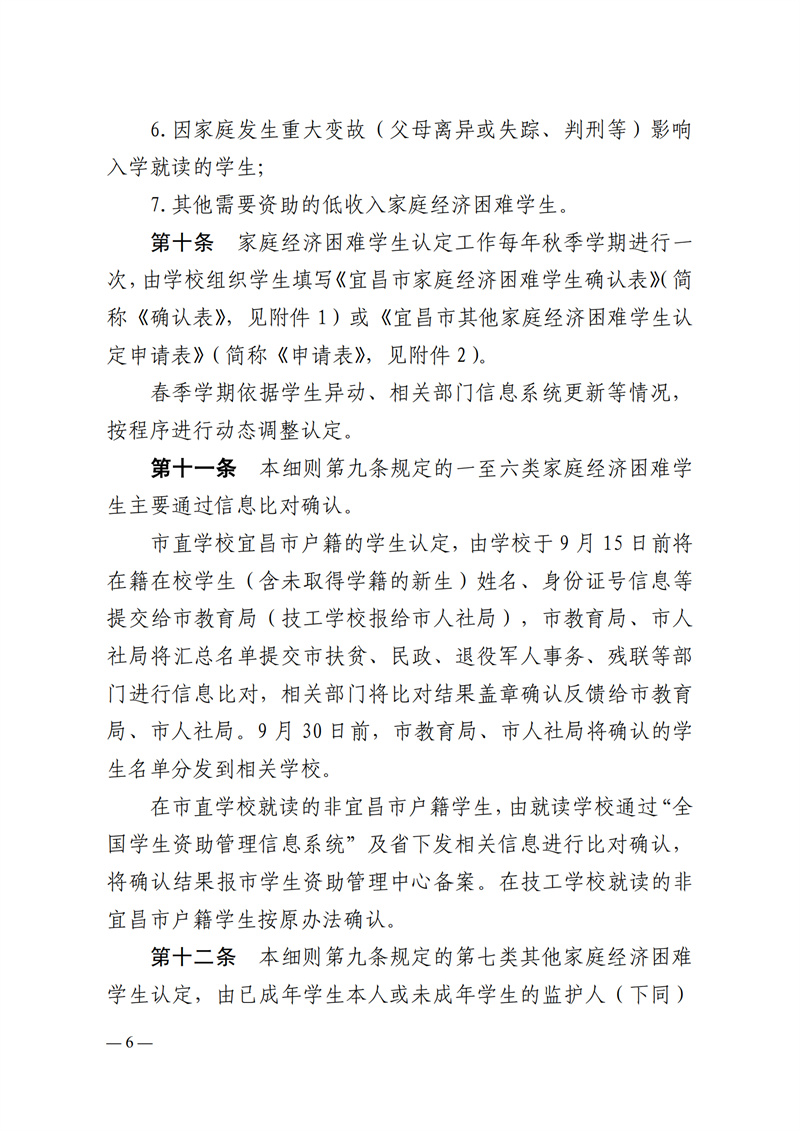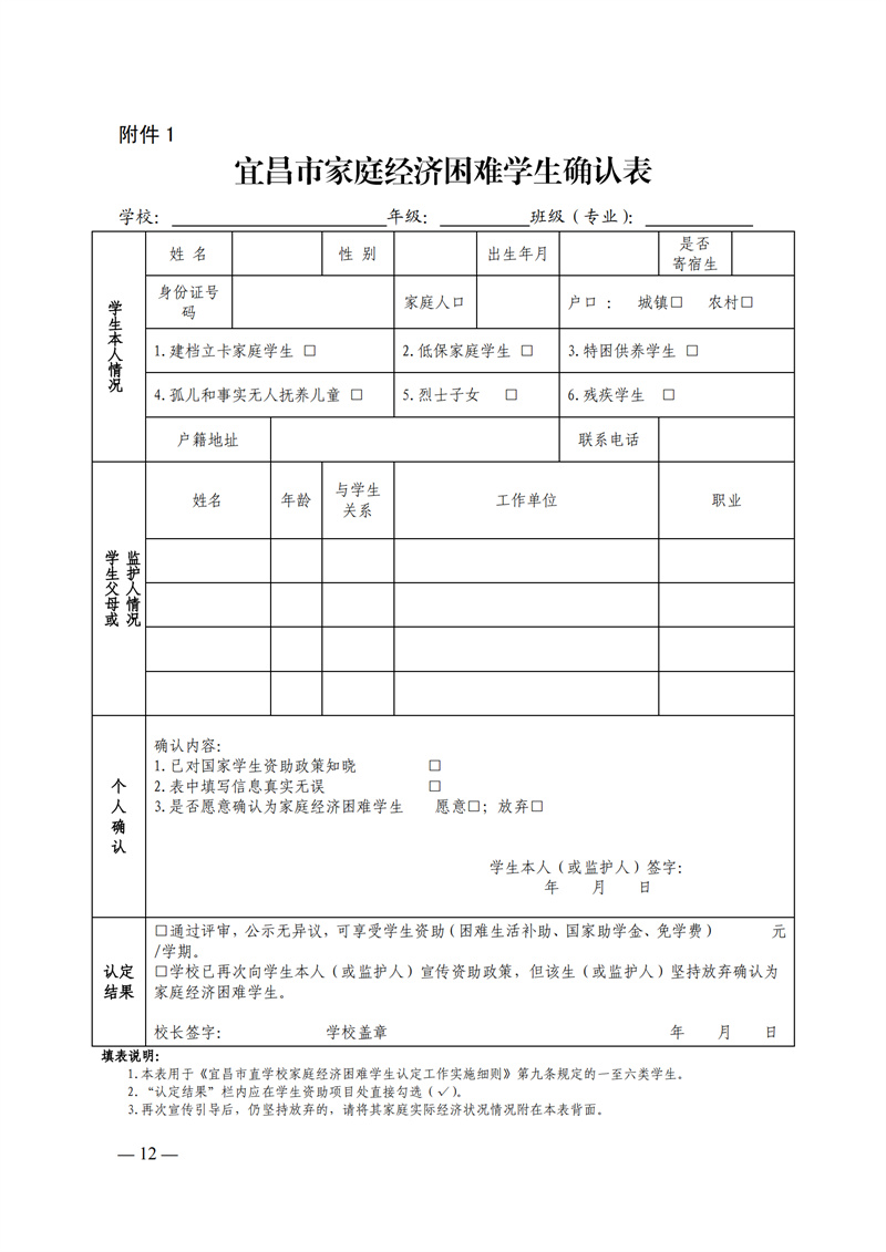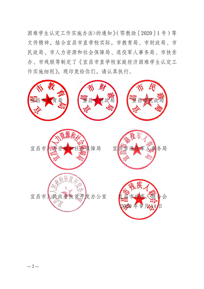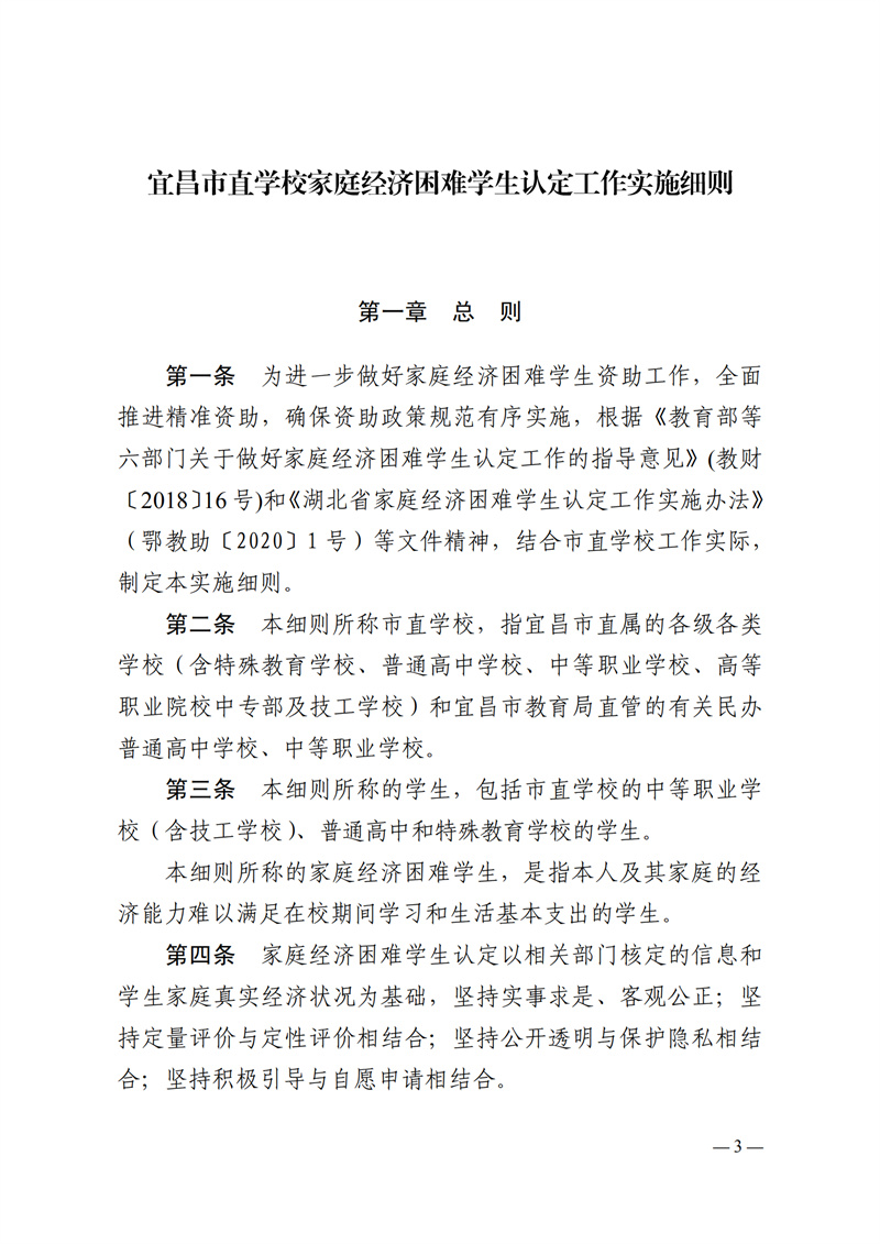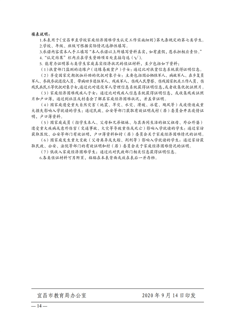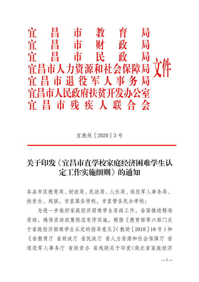 关于印发《宜昌市直学校家庭经济困难学生认定工作实施细则》的通知