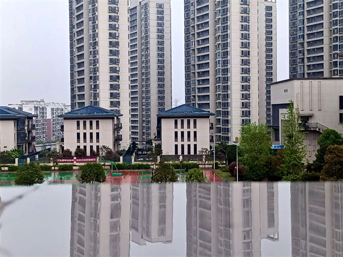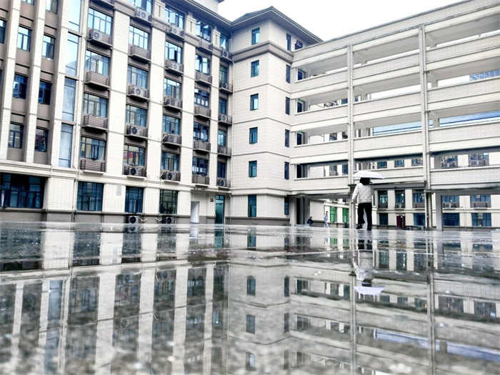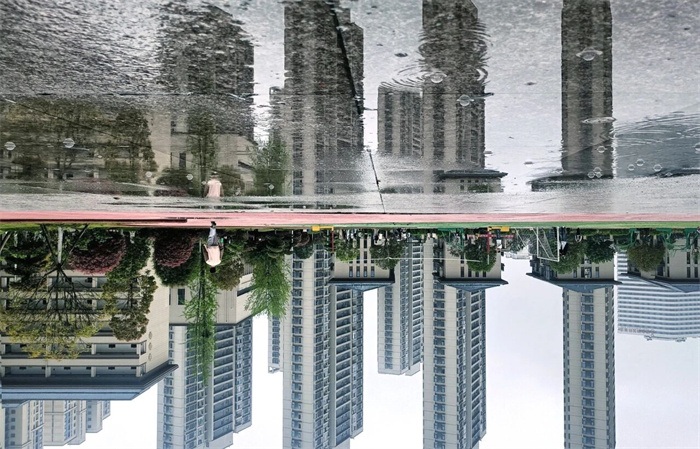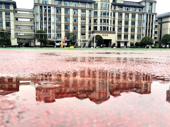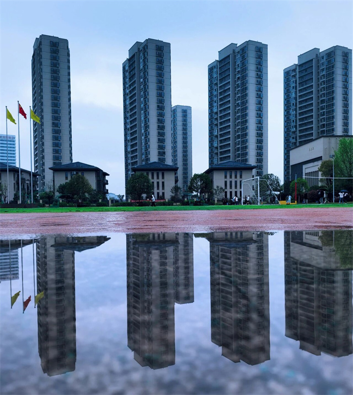 收进整片天空和学校的倒影,
