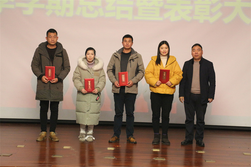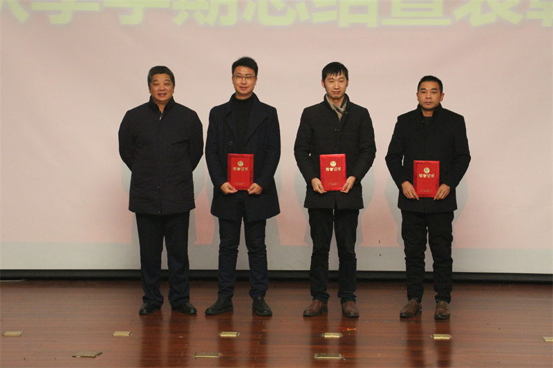在庄严的国歌声中拉开大会序幕,首先是学校领导为2017-2018学年中考核优秀人员颁发荣誉证书。副校长成良祥宣读年度考核优秀人员表彰名单,党委书记田水荣、校长朱宗桥、副校长肖飞为他们颁发荣誉证书。