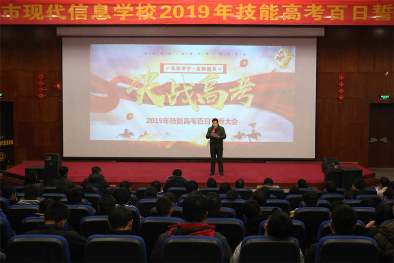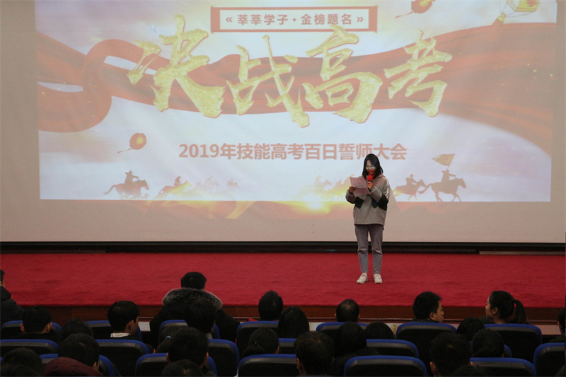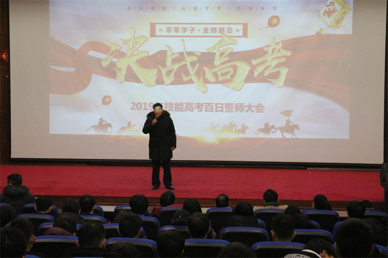 伴随着庄严的国歌声,大会正式拉开了帷幕。首先是高三(1)班学生代表易金凤代表全体高三学生发言,表明了他们将决战专业考试的雄心壮志,表示将努力学习,奋斗一百天,力争在明年专业考试中取得优异成绩。