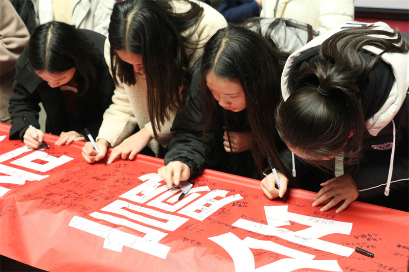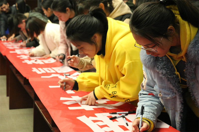 大会结束后,同学们在“爱拼才会赢 奇迹会由我创造”的横幅上庄重地签上了自己的名字。我们坚信,在现代全体师生的共同努力下,同学们定能用智慧和汗水拼搏出一个无悔的青春。