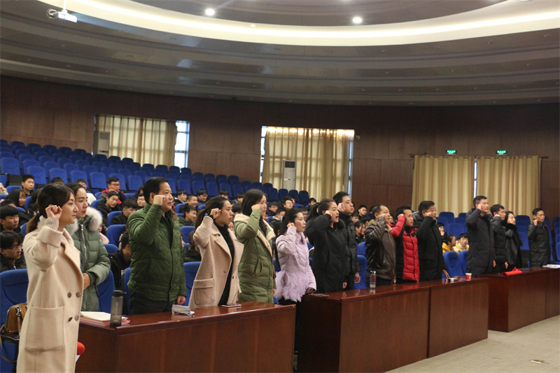 为更好地总结过去,展望未来,推动学校事业发展迈向新台阶,绘就新蓝图。1月18日上午,学校在大礼堂召开2019年全体教职工大会,党委书记田水荣、校长朱宗桥、副校长胡一杰、肖飞、成良祥及全体教职工参加大会,会议由副校长成良祥主持。