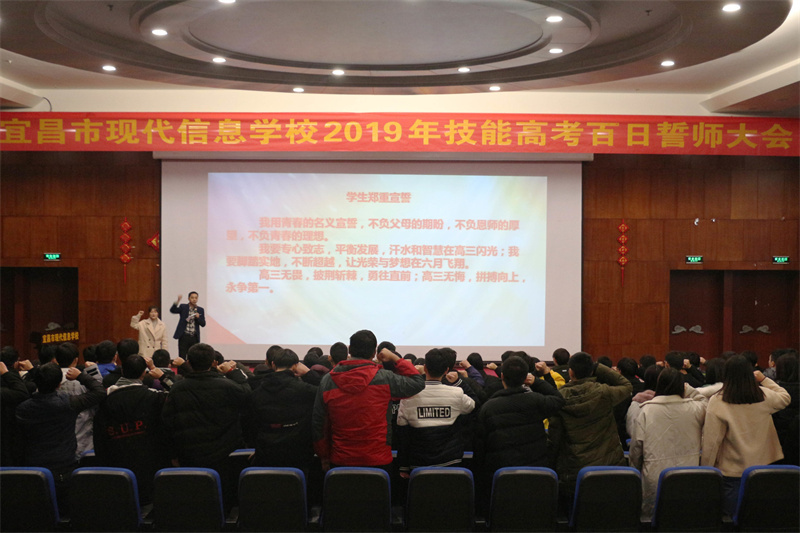 12月18日下午,学校高三年级全体师生在大礼堂隆重举行了高三年级百日誓师大会,大会由颜成元、杨倩倩老师主持。