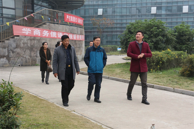 11月30日,教育局领导周欣带领专家组成员一行四人到我校进行视导工作,校长朱宗桥、副校长肖飞、成良祥陪同检查活动。