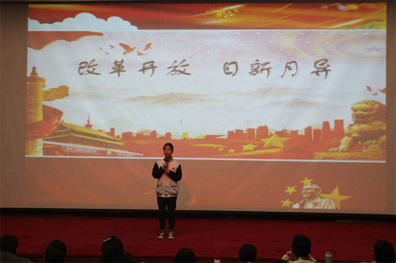 为庆祝改革开放40周年,学校于2018年11月28日下午在大礼堂举办了纪念改革开放40周年主题演讲比赛活动。