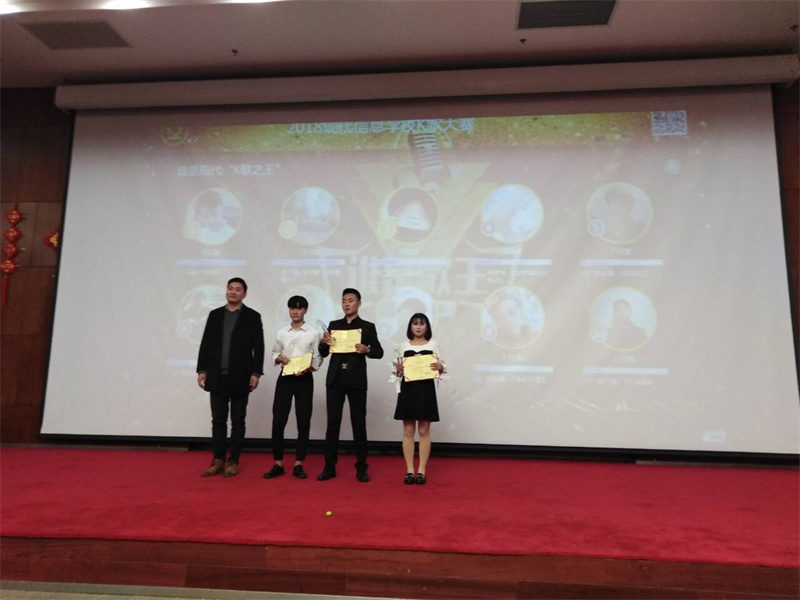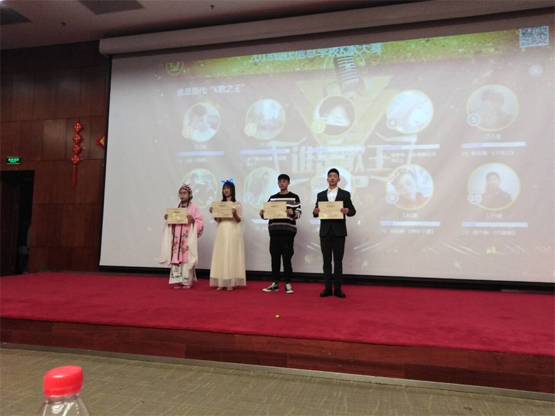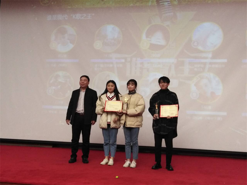 经过激烈角逐后,按照现场打分与网络投票综合评比,吴超等同学脱颖而出,在此次K歌大赛取得优异成绩,成为校园十佳优秀歌手,由评委为其颁发奖杯及奖状。