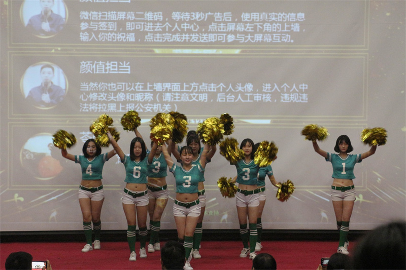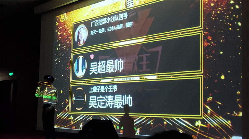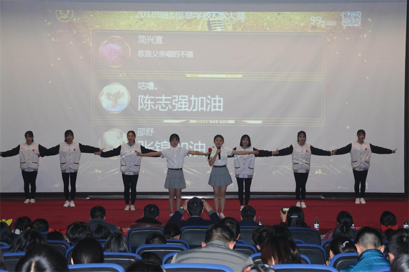 在啦啦操社团的同学们为大家带来一段热舞开场后,决赛正式拉开序幕。现场的气氛十分热烈,场上参赛选手深情献唱,声情并茂地一展歌喉,让人陶醉其中“沉醉不知归路”;场下观众热烈的欢呼声和掌声此起彼伏。除了紧张的比赛环节,现场还有微信投票、弹幕互动、摇红包活动,整个活动场上洋溢着欢乐的气氛。