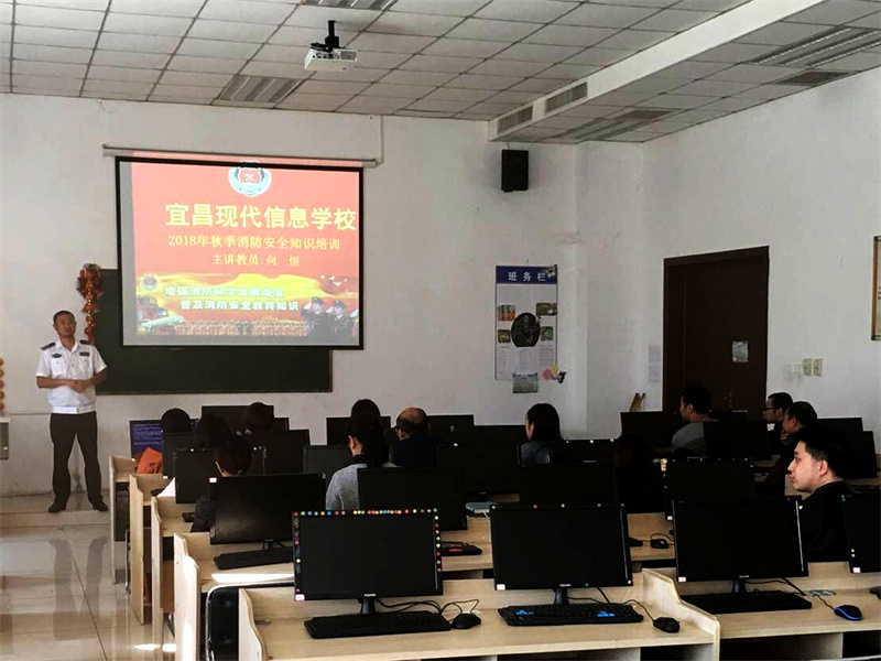 教官向学生讲解火灾的危害和预防火灾的重要性,学生宿舍安全用电常识,发现火情如何及时报警,报警人应注意事项,提高学生的自我保护意识和自救能力,火灾来临时,如何在老师的正确引导下有序疏散等内容。