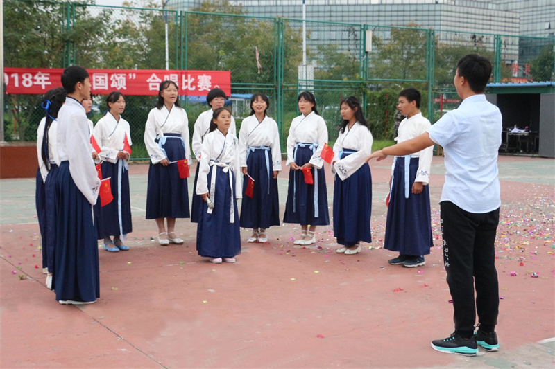 根据合唱比赛要求,各班同学在班主任的带领下,精选歌曲,认真排练,同学们涌跃参与,热情高涨,校园里乐声阵阵,歌声飞扬,营造了班班有歌声,声声唱祖国,人人抒情怀的良好氛围;展现了现代学子爱国爱校、朝气蓬勃、昂扬向上的精神面貌。