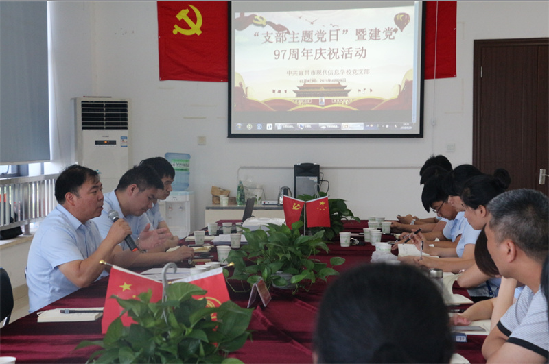 6月29日,在建党97周年前夕,宜昌市现代信息学校党支部组织全体党员、干部开展了中国共产党成立97周年庆祝大会暨六月“支部主题党日”活动,活动由学校党办主任秦胜强同志主持。