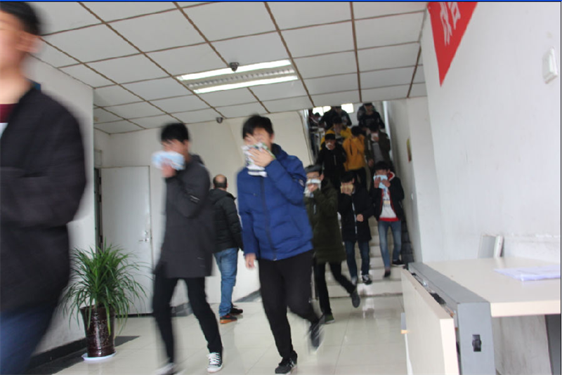 为了实施好这次演练,学校制定了详细的消防疏散演练方案,对各班逃离的路线及每位配班老师的职责、每层楼梯口的值班老师等内容都作了明确的规定。演练开始前,各班主任给学生介绍了简单的逃生注意事项和方法。10时45分,随着警报声响起,全校1300多名学生在各班老师的指引下,捂住口鼻,弯着身体快速有序地按照既定的逃生路线撤离到学校操场,从警报声响起到后一名学生撤离到操场,仅用时2分55秒。学生安全撤离到操场后,各班迅速检查人数,确保每一名学生都已安全撤离。