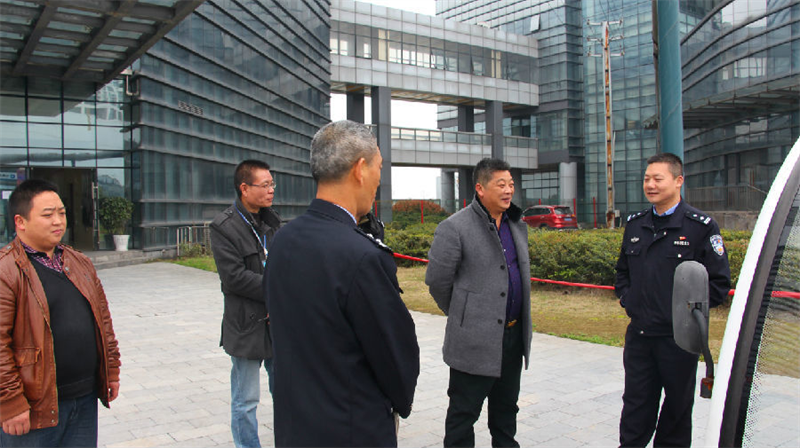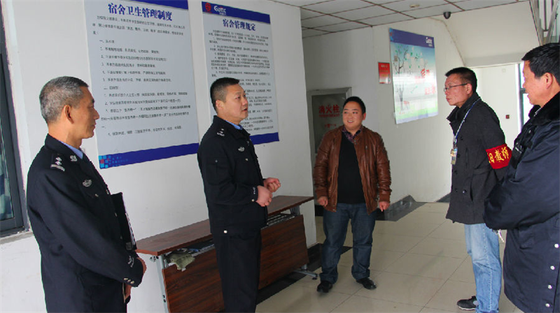 安全检查现场易队长、田所长向学工处副主任邹松涛了解安全情况