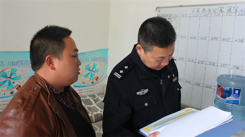 公寓安全检查现场易队长查阅相关记载