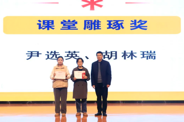 抽奖环节过后,会议进入庄重热烈的颁奖环节。学校对本学期以来在班级管理、课堂教学、敬业奉献、爱心育人、质量守护及校园安全等方面表现突出的教师进行了表彰,现场不断爆发出阵阵热烈祝贺的掌声。每一份荣誉都是对教师初心的肯定,每一次掌声都承载着对教育使命的敬意。