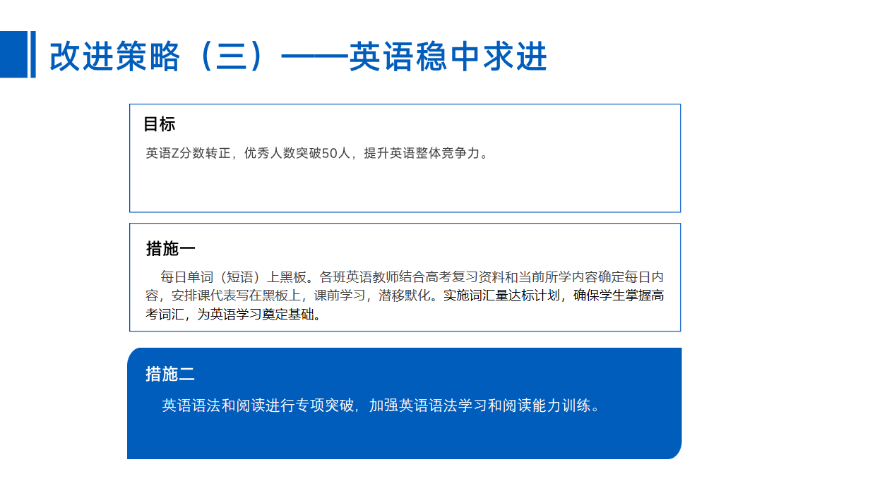 教育的进步离不开经验的总结与智慧的碰撞。在期中质量监测主题发言环节,三位分管教学的年级副主任分别结合各年级教学实际,围绕期中质量监测数据进行深入分析,分享了教学中的有效经验与改进方向。三位主任的发言既有精准的数据支撑,又有务实的实践思考,为全体教师后续优化教学策略、提升教学质量提供了宝贵的参考与借鉴。