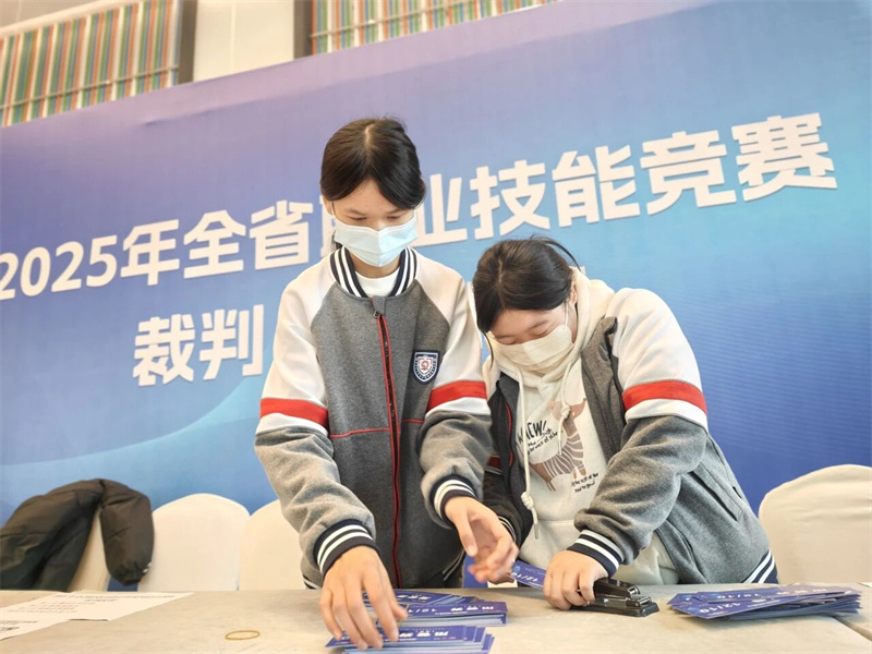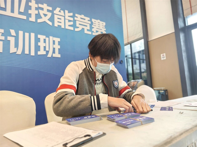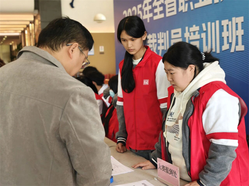 在2025年全省职业技能竞赛裁判员培训班活动中,学校连续两天派出10名志愿者,承担起培训物料整理、人员签到、物资发放、现场答疑及会场服务等工作。志愿者们耐心解答疑问、高效分发物资,展现出良好的专业素养与责任担当。