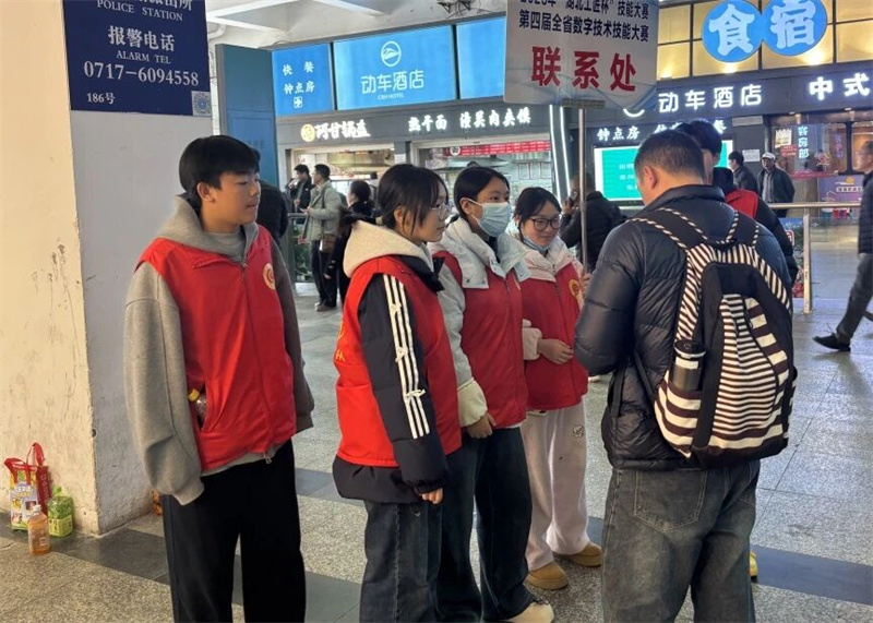 大赛期间,来自宜昌现代信息学校的三十余名志愿者化身赛场“服务小管家”,高质量完成了参赛选手入场核验、赛事协助与会务布置等工作。另有一批志愿者驻守宜昌东站,手持大赛联络处标牌在站点迎接各地参赛选手,为他们提供接站引导、行李搬运与乘车安排等服务,以暖心行动让远道而来的选手感受到宜昌的热情。