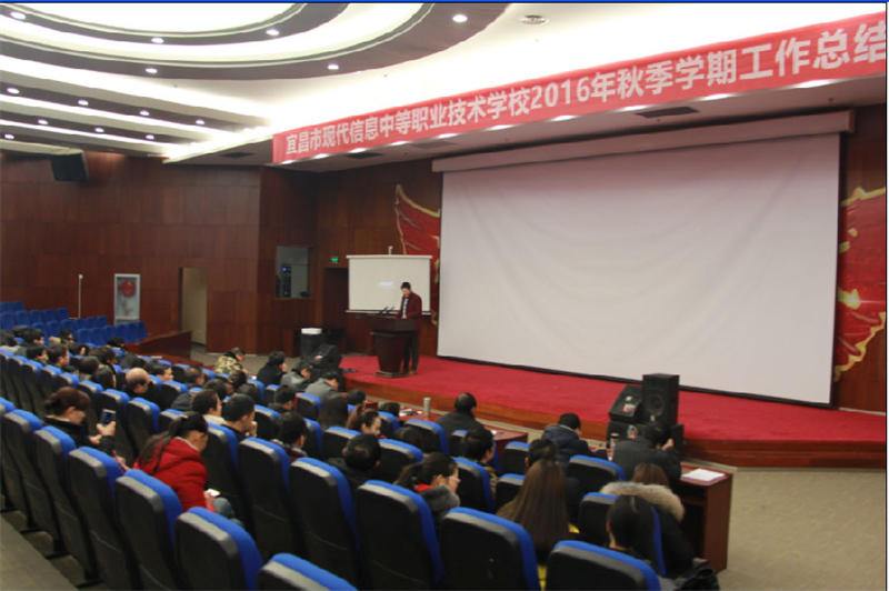 2017年1月13日上午,学校召开全体教职工大会,总结2016~2017学年学期学校各项工作,并布置下学期任务安排。处室负责人汇报部门工作开展情况,执行校长邓峰作了学校工作总结报告,学校领导胡校长、田校长就各自分管的招生就业、教学、日常管理、新校区建设等方面的工作进行了全面的通报和总结。全体教职工80余人参加了会议,会议由副校长肖飞主持。