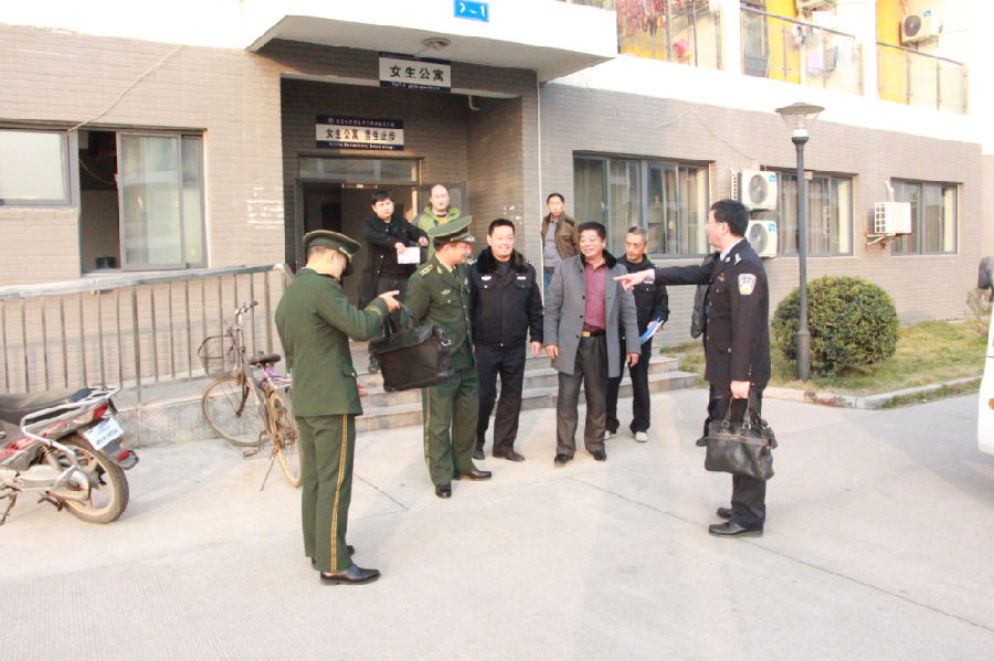 12月5日,宜昌市猇亭区公安分局副局长张雄飞、治安大队长张忠艳、消防大队长卞路一行组成的联合检查组,对我校进行消防安全大检查。