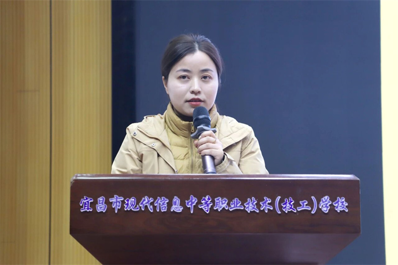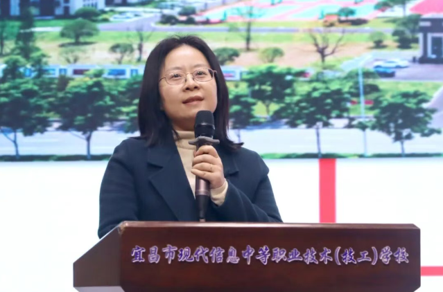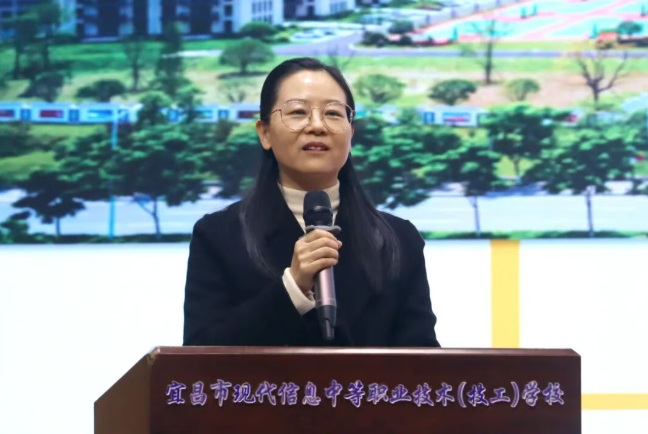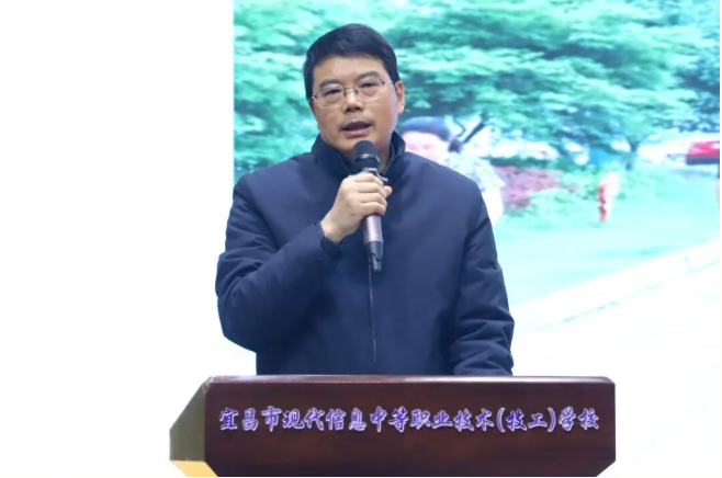 宜昌现代信息学校副校长肖飞系统汇报了学校近年来在产教融合、校企合作方面的实践与成效。
