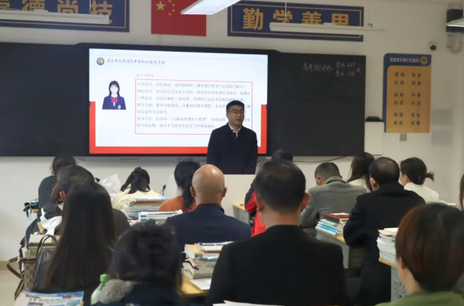 高三英语教师尹小波作为教师代表,从“目标、策略、支持”三个维度展开汇报。她详细介绍了英语备课组实施的“四大策略”:化繁为简,提炼核心知识点;即学即练,巩固课堂成效;可视化激励,营造积极氛围;个性化辅导,靶向突破薄弱环节。尹老师动情地说:“我们见过孩子们深夜苦读的身影,也见过他们突破难点时的笑容。我们承诺,绝不放弃任何一个孩子,也绝不忽略任何一个可提升的细节。”她呼吁家长与教师同心同行,做孩子情绪的“稳定器”、沟通的“联络员”和进步的“见证者”。