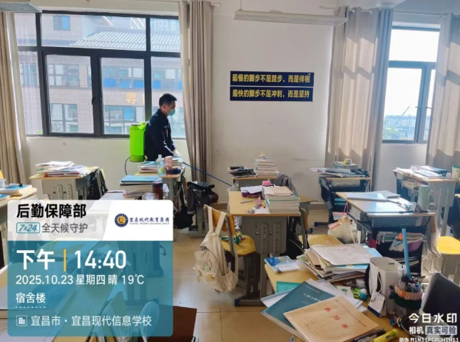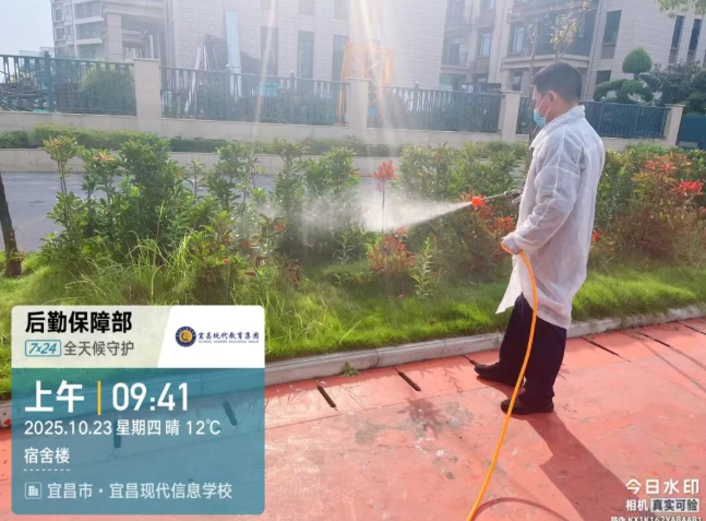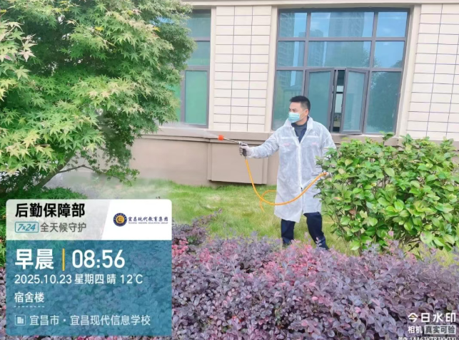 冬季是呼吸道疾病高发期,除了对校园绿化带进行全方位维护、消杀,后勤团队还对校园公共区域进行了预防性消杀。消杀范围覆盖教学楼、学生寝室等高频接触区域,特别是明沟暗渠等易滋生细菌的卫生死角。消杀工作严格按照专业标准,覆盖重点区域,有效消除了蚊媒孳生源头,为全校师生筑起一道坚实的冬季卫生与防疫屏障。
