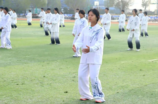千年养生智慧,一脉相承;中华文化瑰宝,生生不息。八段锦以其“外练筋骨、内调气血”的独特魅力,成为连接传统文化与现代健康生活的桥梁。25级八段锦方阵惊艳亮相,从“起势”到“收势”行云流水,刚柔相济,他们不仅是赛场上的“文化使者”,更生动展示了学校特色体育课程的成果。24级韵律团体操展演则巧妙融入了体操动作与现代舞元素,并辅以丰富的队形变换与音乐变奏。伴随着动感的节奏,同学们动作整齐划一,举手投足间展现出良好的协调性与团队默契。