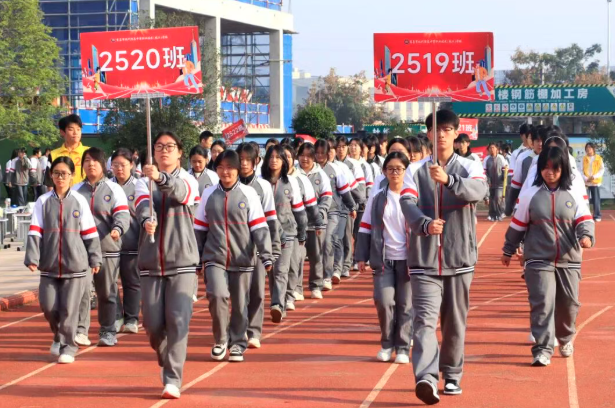 少年意气满赛场,青春活力永不停。猎猎彩旗映着秋阳,各班级方阵迈着铿锵步伐,依次走过主席台。同学们身着整齐划一的服装,身姿挺拔、精神抖擞,嘹亮的口号穿透云霄,每一步都踏满朝气,每一眼都盛满对赛场的向往,将少年意气展现得淋漓尽致。