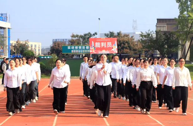 由各年级教师组成的裁判员方阵压轴登场,整齐划一的队列,展现出全体参与者对本届盛会的重视与期待。