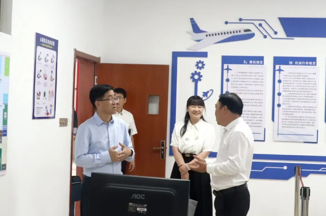 梅军局长一行实地考察了学生宿舍、学术报告厅、无人机实训室等场所。田水荣同志就校园安全管理和专业建设两方面的重点举措进行了汇报。他详述了学校在保障师生生命安全方面的具体工作,包括大力推进校园法治建设、持续升级安防设施设备以及凝聚家校共育合力。同时,在专业建设与校企合作方面,他介绍了学校无人机应用技术、计算机网络技术等专业的发展现状与未来规划。