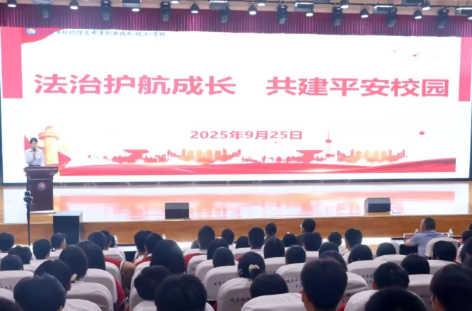 聘任仪式结束后,法治副校长黄家波同志为全体师生带来了一场生动的法治教育讲座。他紧密结合中职学生的特点,以法律责任年龄为切入点,运用真实案例深入剖析了“校园欺凌”的危害与法律后果。他告诫学生要牢记“勿以恶小而为之”,增强法律意识,勇敢对欺凌行为说“不”。整场讲座内容翔实,学生们认真聆听,现场反响热烈。
