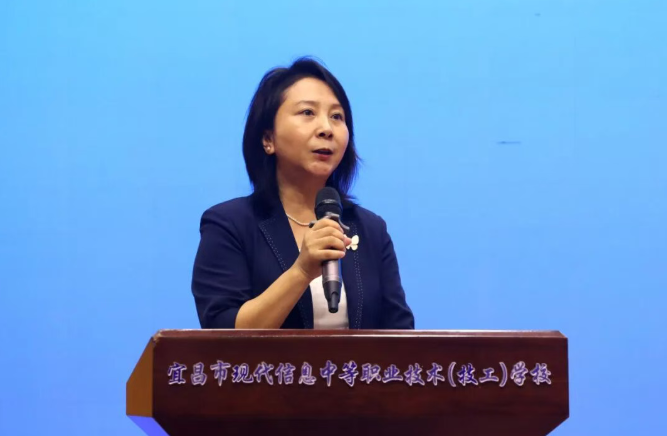 区教育局副书记王束寒代表区教育局,汇报了在推进职业教育改革发展支持学校建设方面的主要举措。她表示,作为伍家岗区目前唯一一所职业学校,宜昌现代信息学校始终坚持党对教育工作的全面领导,以教育家精神为引领,持续强化思想政治与师德师风建设。区教育局通过支持学校扩大招生规模、联合多部门推动技工教育发展、强化与区内重点企业合作、引导学生在区内实习实训、开设“订单班”等多种方式,着力深化产教融合。同时,积极畅通职普融通渠道,将职业教育体验课程纳入九年级教学安排,已组织全区2000多名学生到校进行沉浸式体验,有效促进了人才培养方式的多元化。下一步,区教育局将聚焦提质增效,深化职普协同,强化规范管理,探索职普教学资源共享,切实履行对中职学校的指导与服务职能,积极回应学校发展需求,为职业教育营造更优发展环境。