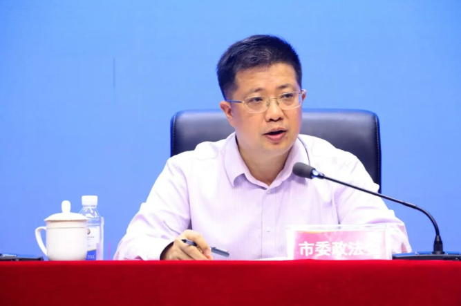 市委政法委基层社会治理科科长贺金华通报了全市14所中职学校法治副校长机制落实情况,重点解读了法治副校长、警务室民警、法治辅导员“三支队伍”履职清单,明确了各自的工作任务,并强调配强法治副校长、配齐法治辅导员、规范运行警务室对夯实校园法治基础具有重要意义。