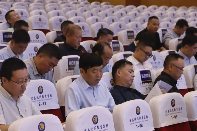 现代教育集团董事长、党支部书记田水荣,党支部副书记、校长吴昌钧,督学李朝晖,副校长肖飞出席会议,全体教师参会。本次大会由学校办公室主任唐妮娅主持。