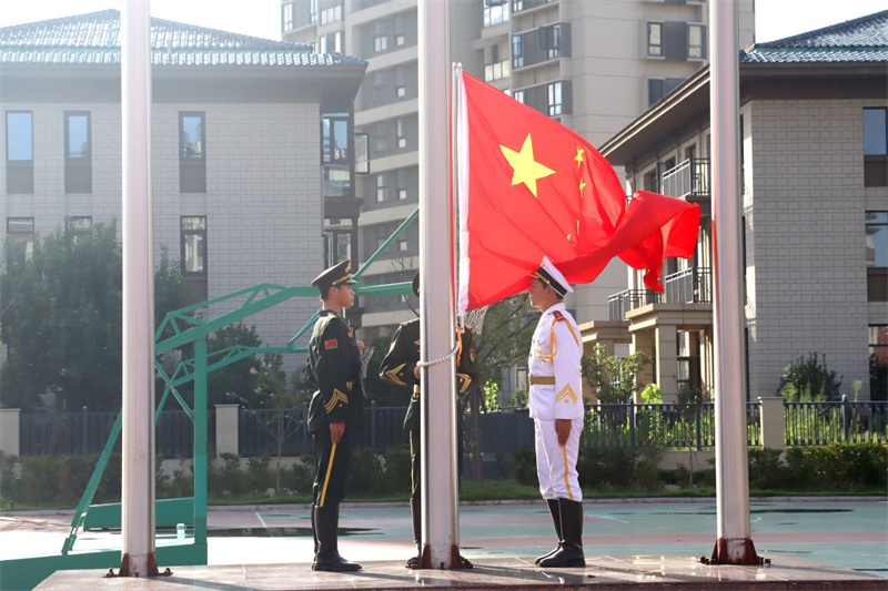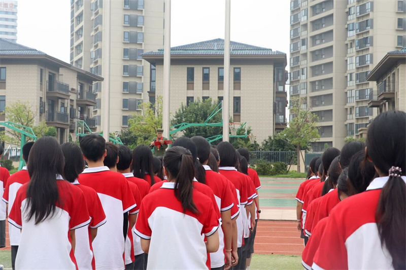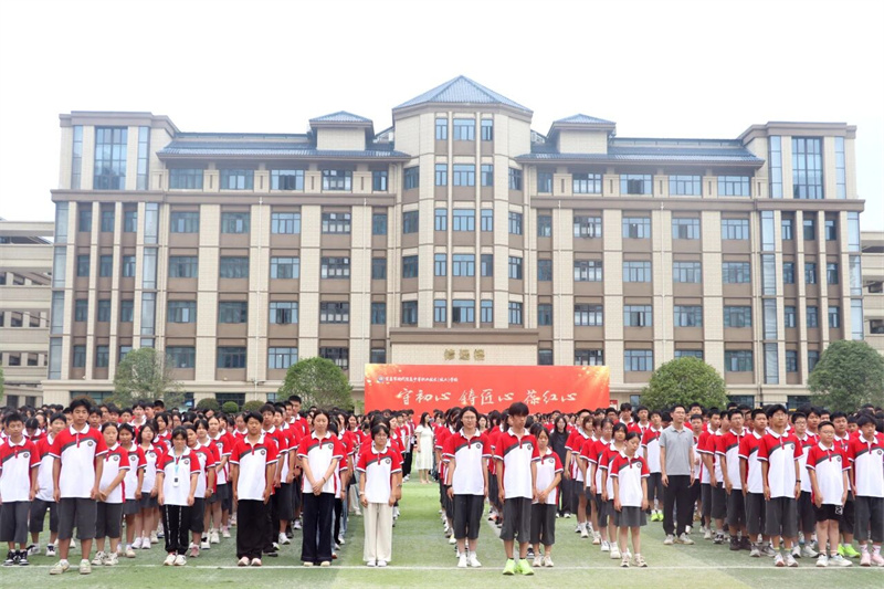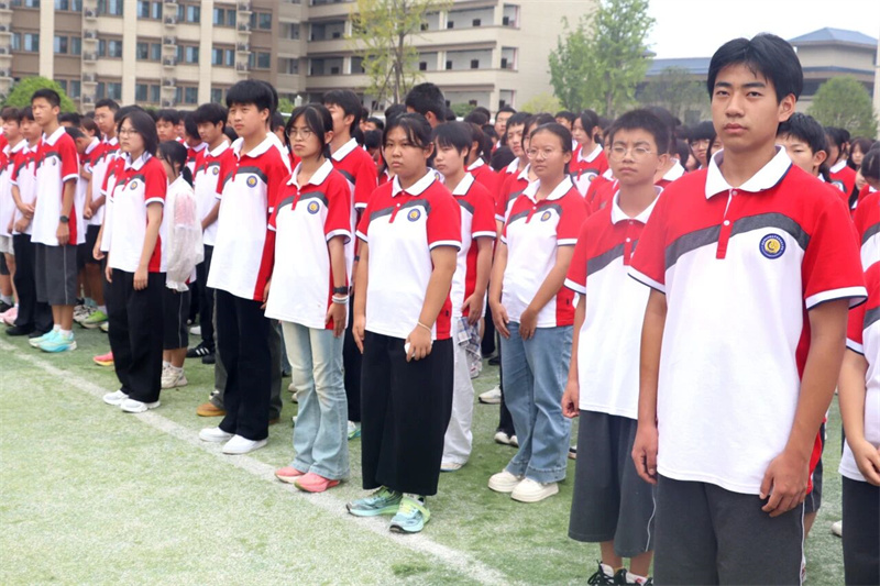 军训汇演是整场仪式的华彩篇章。高一学子们以饱满的精神状态展示军训成果:男子棍术虎虎生风,尽显阳刚之气;女子匕首操动作凌厉,巾帼不让须眉;《国家》手语操整齐划一……值此纪念中国人民抗日战争暨世界反法西斯战争胜利80周年之际,他们用专注的眼神和整齐的动作,诠释着和平年代青春应有的历史铭记与时代担当。
