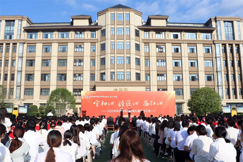 凝聚师生磅礴力,共筑阳光优质校。校长吴昌钧满怀新学期的热情,向全体师生员工致以诚挚的问候。他在致辞中对上学年获得省、市各级各类大赛奖项的学子予以褒奖,对获得“生动课堂”大赛奖项的教师给予祝贺。他勉励同学们要守初心、铸匠心、葆红心,做“不躺平”的追梦人,做“超靠谱”的技术人,做“有力量”的追光人。今年,恰逢中国人民抗日战争暨世界反法西斯战争胜利 80 周年,他在发言中,与师生共思抗战精神的时代意义,呼吁广大学子将国之爱、家之爱转化为责任担当,使今后的职业发展与国家富强、民族振兴“同频共振”。最后,他祝愿学子珍惜校园时光,在新学期心如花木、向阳而生、悦纳自我、芬芳他人。