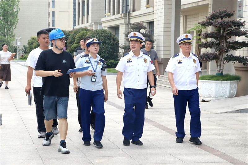 9月4日下午,宜昌市消防支队防火监督科参谋江鹏, 伍家岗消防救援大队防火参谋孔晨、董汉明 ,宜昌市教育局应急管理科副科长刘宇琦一行,对学校开展了全覆盖的开学消防安全专项检查,校长吴昌钧、督学李朝晖就学校安全工作情况作了汇报。