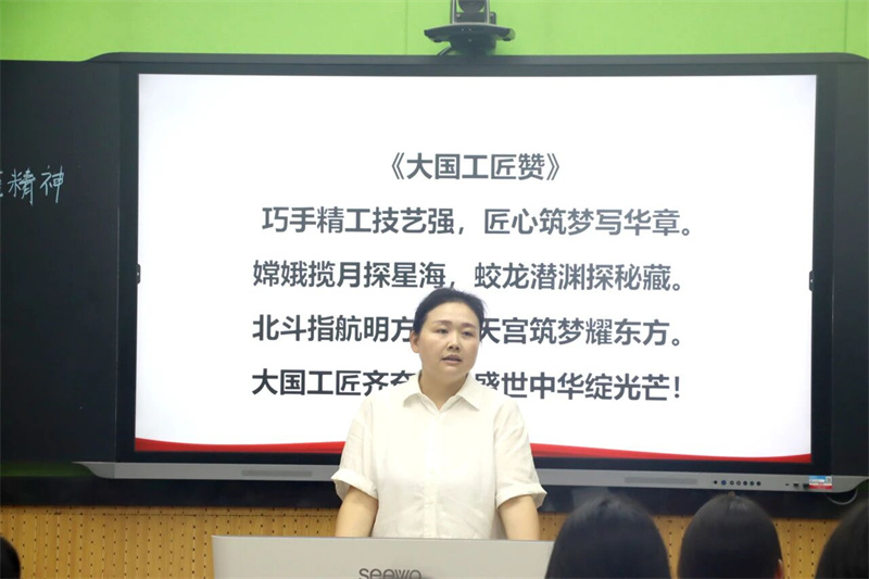 活动当天,湖北三峡技师学院的叶婧老师在我校录播教室,以《立技能之志,践强国之行》为主题,开启了一场精彩的思政之旅。课程从“工匠精神的内涵解读、意义与践行”三个部分展开,层层递进,环环相扣。