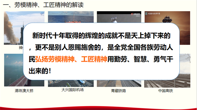 课程伊始,叶婧老师通过一段精心挑选的视频,展示了中国近十年在各个领域取得的巨大成就。一个个令人惊叹的数字,让同学们直观地感受到国家的飞速发展,深刻认识到劳模精神、劳动精神、工匠精神对推进中国式现代化发展的重大时代价值和战略意义,更激励同学们将之融入到自己未来的职业生涯中去。