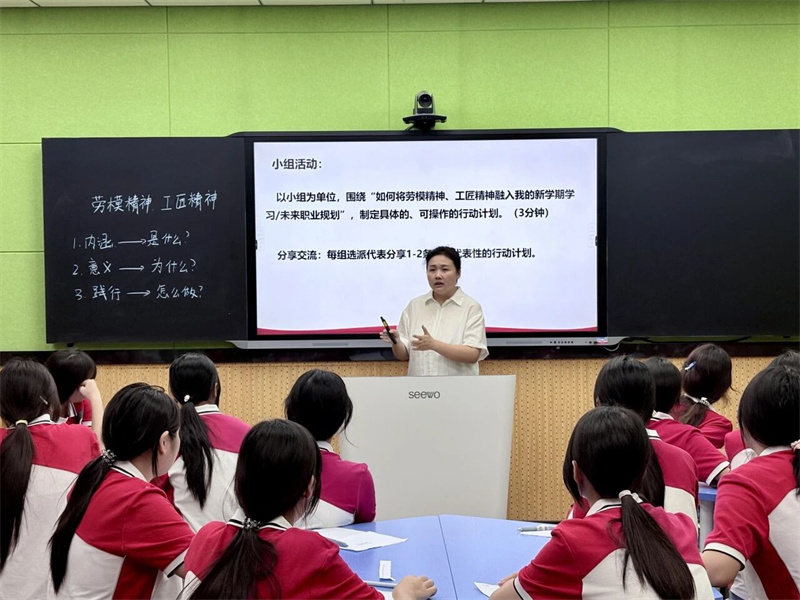 为促进知行合一,课堂还组织了小组活动。各小组围绕“如何践行工匠精神”这一主题,热火朝天地设计标语、制定具体行动计划,并推选代表进行亮点分享,现场气氛十分热烈。