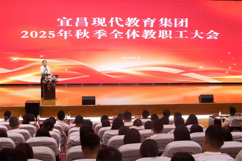 秋兰飘香,硕果盈枝。8月19日上午,宜昌现代教育集团隆重召开2025年秋季全体教职工大会。集团董事长田水荣、总经理胡一杰等董事会领导、各事业部管理人员及全体教职工齐聚一堂,共襄盛举,总结过往辉煌,规划未来蓝图。会议由集团办副主任张露主持。