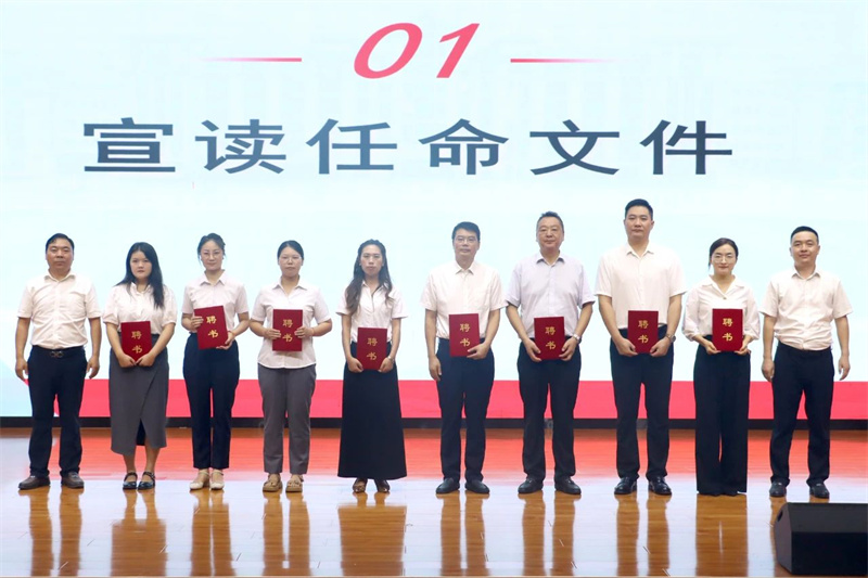 集团发展,管理先行。集团总经理胡一杰先生宣读了各事业部主要管理人员名单,董事长田水荣先生为受聘人员颁发聘书。