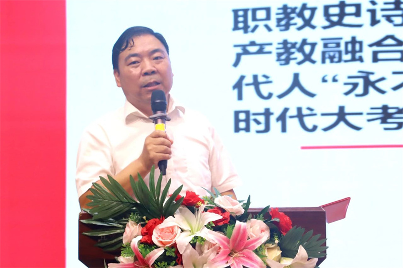 在热烈的掌声中,集团董事长田水荣先生发表了题为《聚力攻坚抓落实 久久为功谱新篇》的重要讲话。田董的讲话高屋建瓴,内涵丰富。他全面系统地总结了过去一学年集团在品牌建设、师生竞赛、产教融合、后勤服务等方面取得的显著成就,深刻剖析了当前职业教育面临的国家战略机遇与时代挑战。立足集团新发展阶段,田董从深化课程改革、强化产教融合、优化师资队伍、促进学生全面发展等关键维度,清晰勾画了集团2026年高质量发展的战略路径和行动蓝图,为全体教职工指明了前进的方向,注入了强大的精神动力。